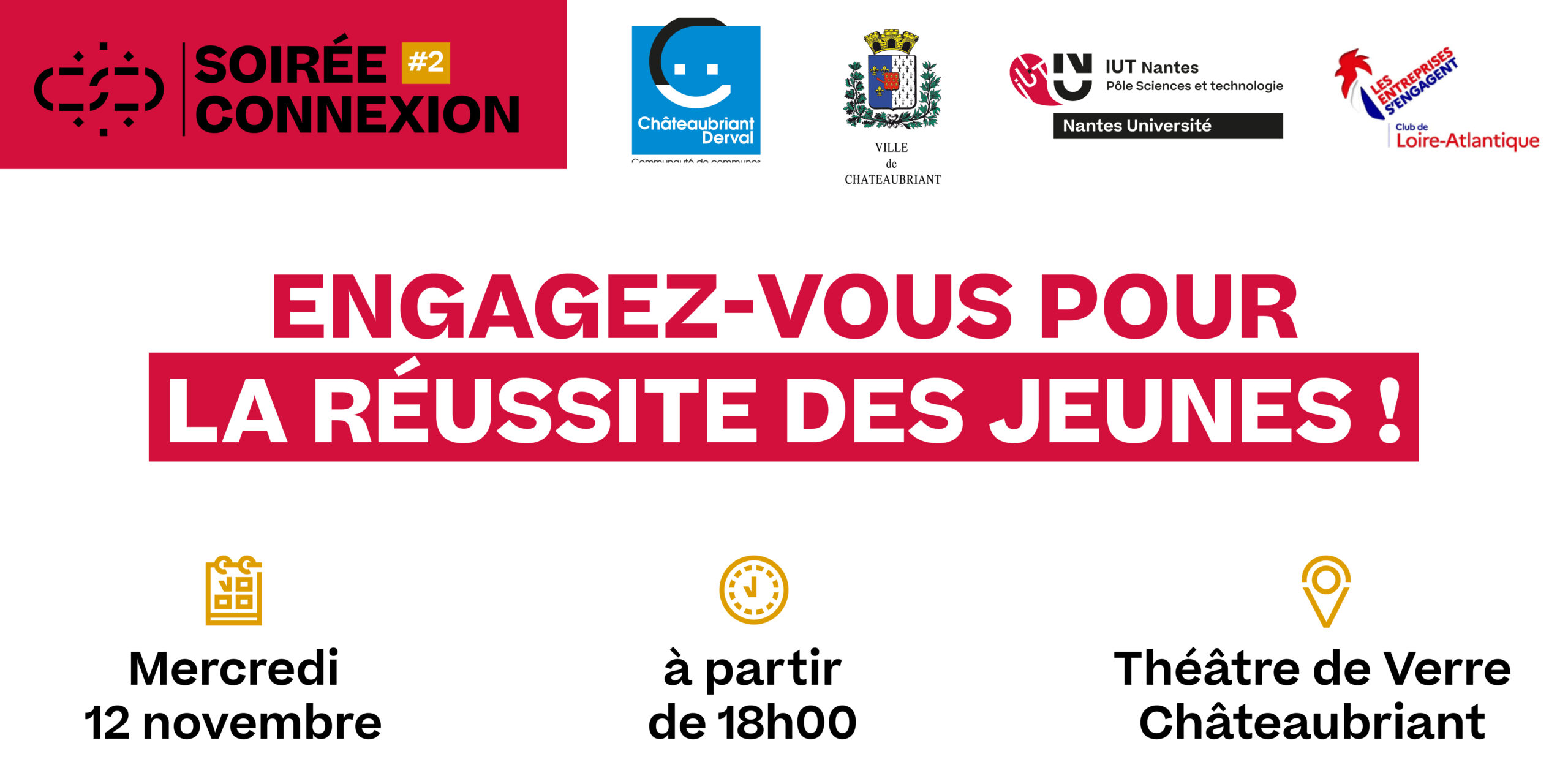 La communauté de communes Châteaubriant-Derval, l’IUT de Nantes et Les Entreprises s’engagent – club de Loire-Atlantique organisent la Soirée Connexion : une soirée pour s’engager et accompagner l’insertion professionnelle des jeunes
